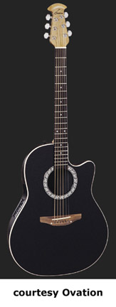 Standard Balladeer Super Shallow Cutaway Electric LX (Model 1861LX) | - similar to the Standard Balladeer Super Shallow Cutaway, except has LX upgrades including enhanced scalloped LX bracing, advanced neck system, Ovation Original Patented Pickup, and Op-Pro preamp, available in Black or Cherry Cherry Burst finish, mfg. summer 2005-08. |