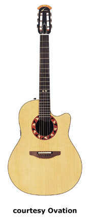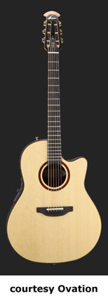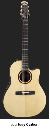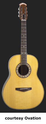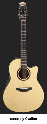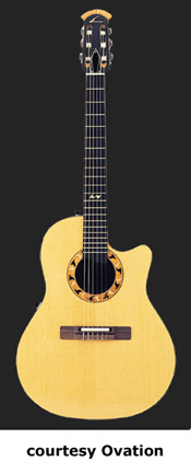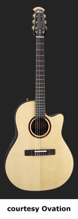 OVATION | ACOUSTIC: COUNTRY ARTIST/FOLKLORE/JOSH WHITE SERIES | This series was introduced in 1967 as the Josh White Model (1114). Josh White was a blues and folk singer. He would actually visit the factory in the early days and they decided to make a guitar for him. Josh liked the wider neck Ovation offered that his current Guild did not. The Josh White model would become the fourth model in Ovation's product line. After he died in 1970, Ovation discontinued the model. In 1972, they reintroduced the same guitar (Model 1114), but as a different name, the Folklore. A new electric Folklore was introduced at the same time as the Model 1614. These models were produced until 1983, when they were discontinued again. In 1994, they reintroduced the Folklore once again, this time as the Model 6774. The Country Artist was introduced to replace the Josh White model. The Josh Model was reintroduced in 1972, but it did not disc. the Country Artist model. The Country Artist model was produced into circa 1990, but was reintroduced in 1994 as a new model. | ARTIST CUTAWAY CONTOUR LX (MODEL 2773LX) | - nylon-string configuration, single cutaway deep contoured body, solid-spruce top, scalloped LX bracing, round soundhole with inlaid tortoise rosette, 14/20-fret ebony fingerboard, slotted headstock, three-per-side open-style gold tuners with black buttons, ebony bridge, original patented pickup, OP-PRO electronics, available in Natural finish, 25.25 in. scale, new 2008. |