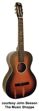 MODEL 66K/67K | - concert size Hawaiian guitar, all mahogany body, round soundhole, white binding, square neck (66K) or round neck (67K), available in Natural or Sunburst finish, mfg. 1930s. |