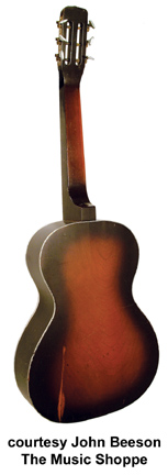 MODEL 64K/65K | - full size Hawaiian guitar, all mahogany body, round soundhole, white binding, square neck (65K) or round neck (64K), available in Natural or Sunburst finish, mfg. 1930s. |