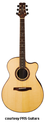 PAUL REED SMITH GUITARS (PRS) | Acoustic instruments prototypes were previously produced in Annapolis, MD. Electric instruments currently produced in Stevensville, MD since 1996. Instruments previously produced Annapolis, MD from 1985 to 1996. | Paul Reed Smith started designing and building guitars in the 1970. By 1985, Paul Reed Smith Guitars was started as a company. Paul is known primarily for his highly figured tops on his electric guitars. In 1992, PRS Guitars first ventured down the acoustic route. Dana Bourgeois was brought on to design these guitars and with Paul's help they came up with three acoustic models. However, eleven instruments were built (all prototypes) and they never reached the production phase. No full-acoustic models have been produced and it is unknown what happened to the prototype instruments. In 2008, PRS began experimenting with acoustic models again in their Private Stock line, and in 2009, two production acoustic models, the Angelus Cutaway and Tonare Grand were introduced with several available options. For a full history and electric guitar information, refer to the Blue Book of Electric Guitars. | | ACOUSTIC: 1992 | ACOUSTIC: CURRENT MODELS |