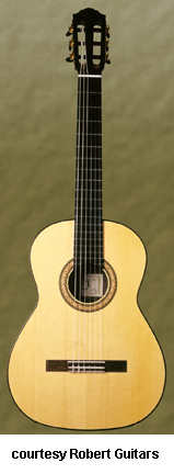 ROBERT GUITARS | Instruments currently built in British Columbia, Canada since the early 1980s. | Luthier Mikhail Robert was born in Moldavia, USSR in 1960 and he has been studying classical guitar and the violin since he was eight. Robert moved to Canada and studied math, physics, and guitars. In 1981, he built his first guitar, and by 1987, he had recieved international recognition for his guitar building. Robert builds a Concert Grand classical and a Short Scale classical, and prices on guitars start at $8,300 CAD. For more information, visit Robert Guitars's website or contact them directly (see Trademark Index). | |