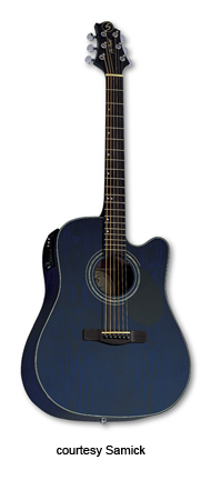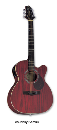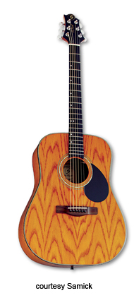 SAMICK | ACOUSTIC: EDEN PLAINS SERIES | | D 4 | - dreadnought style body, solid spruce top, ash sides and back, six-ply reverse binding, black pickguard, three-per-side Grover tuners, chrome hardware, available in Antique Natural, Trans. Red, Trans. Blue, Amber, or Trans. Black finish, mfg. 2001-present. |