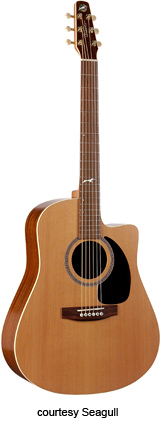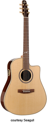 CAMEO CUTAWAY (MODEL 21758) | - full sized single cutaway body, solid spruce top, solid flame maple back and sides, mahogany neck, 14/21-fret rosewood fingerboard with dove inlay, rosewood bridge, high gloss natural lacquer, case included, mfg. 2003-present. |