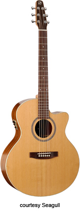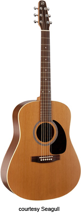 SEAGULL | ACOUSTIC: MARITIME (M) SERIES | In 2006, the Maritime Series replaced the M Series. There were not a lot of physical changes except for a new polished lacquer finish and new model number designations. | MARITIME CEDAR GLOSS (M6, MODEL 29297/22342) | - full sized body, solid cedar top, mahogany back and sides, 14/21-fret fingerboard with dot inlay, tortoise pickguard, 3-per-side chrome tuners, laquer finished Natural gloss top, mfg. 2003-present. |