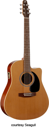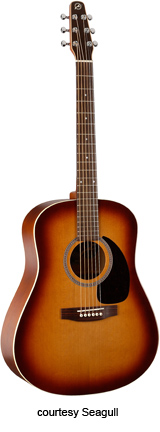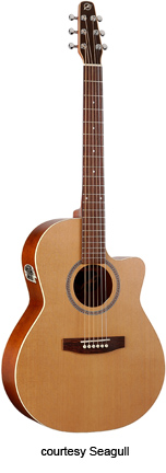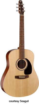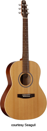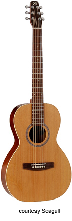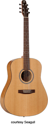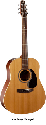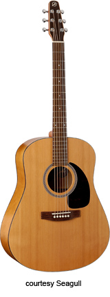 SEAGULL | ACOUSTIC: COASTLINE (S) SERIES | In 2006, the Coastline Series replaced the S Series. There were not a lot of physical changes except for a new polished laqcuer finish and new model number designations. | S 6 (MODEL 29396) | - dreadnought style bound body, solid cedar top, black pickguard, round soundhole, multi stripe rosette, wild cherry back/sides, mahogany neck, 14/21-fret rosewood fingerboard with pearl dot inlay, rosewood bridge with white black dot pins, blackface peghead with screened logo, three-per-side chrome tuners, available in Natural finish, mfg. 1993-present. |