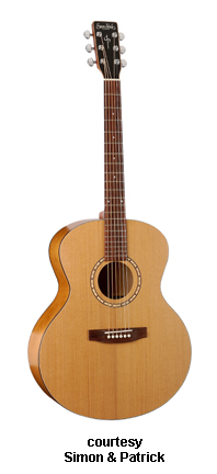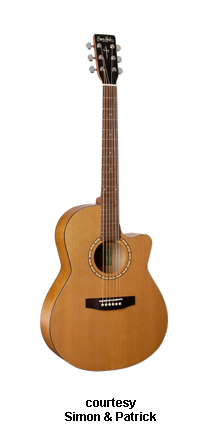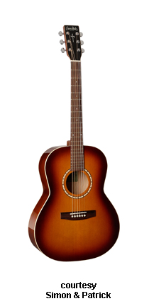 SIMON & PATRICK | ACOUSTIC: WOODLAND (S&P) SERIES | In 2006, the Woodland Series replaced the regular S&P models and the Vintage Burst Series replaced the Sunburst models. Most models are exactly the same with new number designations. | WOODLAND 6 CEDAR (S&P 6 CEDAR, MODEL 28955/2719) | - solid cedar top, wild cherry back and sides, rosewood fingerboard and bridge, three-per-side headstock, lacquer finish, current mfg. |