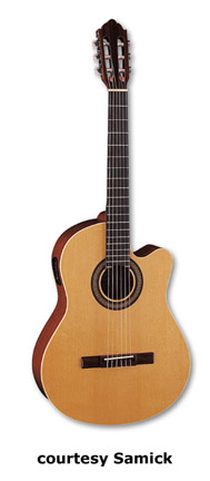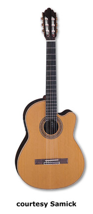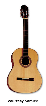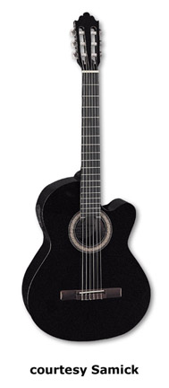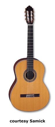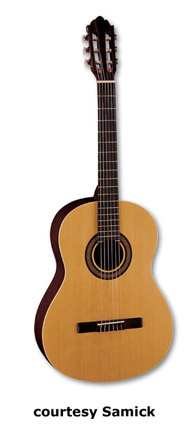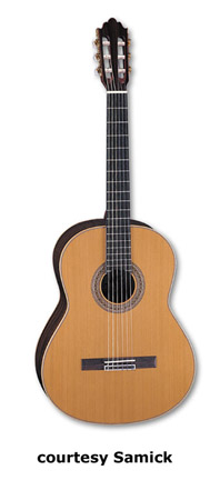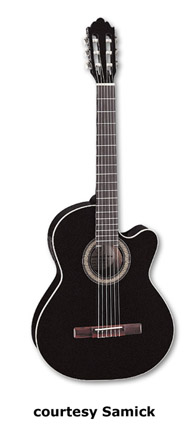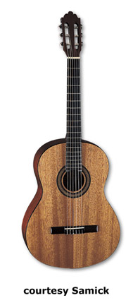 SAMICK | ACOUSTIC: BARCELONA CLASSIC SERIES | | C 1 | - classical body style, nato top/back/sides, open style headstock, available in Black or Natural finish, mfg. 2005-present. |