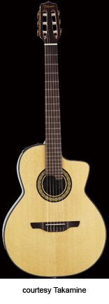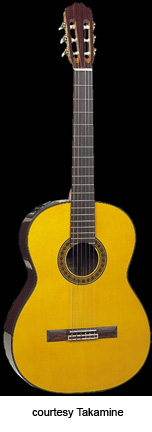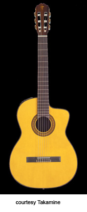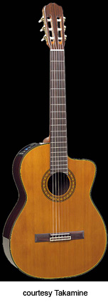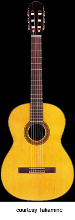 TC-132SC | - single cutaway classical body, solid cedar top, solid rosewood back, rosewood sides, round soundhole with marquettery rosette, rosewood fingerboard, three-per-side open-style tuners, rosewood bridge, CTP-1 Cool Tube electronics, gold hardware, available in Black (2004-05) or Natural finish, mfg. 2004-present. |
