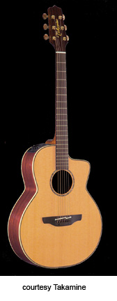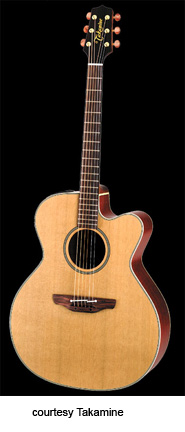 TAN-55C | - AXC body shape, solid cedar top, rosewood back and sides, round soundhole, concentric ring rosette, body binding, rosewood fingerboard, three-per-side tuners with amber buttons, CTP-1 Cool Tube electronics, gold hardware, available in Natural finish, mfg. 2005-present. |