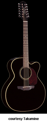 TF-281DLX 12-String | -similar to the EF-281S 12-String, except has a single cutaway, solid mahogany back, abalone rosette, and CTP Cool Tube electronics, available in Black finish, mfg. 2006-present. |