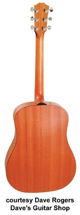 210 | - dreadnought style, Sitka spruce top, sapele back and sides, Tropical American Mahogany neck, 20-fret ebony fingerboard with dot inlay, black plastic binding, chrome hardware, varnish natural finish, mfg. 2005-present. |
