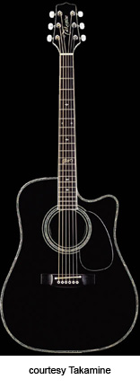 STEVE WARINER SW-341SC | - single cutaway dreadnought body, solid cedar top, solid mahogany back, mahogany sides,roundsoundhole, abalone rosette, abalone binding, rosewood fingerboard with snowflake and 12th fret SW inlays, three-per-side tuners with pearl buttons, rosewood bridge, CT-4B electronics, chrome hardware, available in Black finish, mfg. 1996-97, 2001-present. |