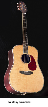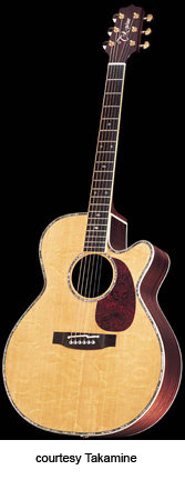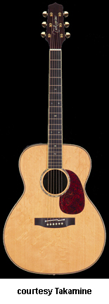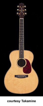 ENV-760S | - OM style, solid bear claw spruce top, solid Indian rosewood back and sides, abalone rosette, abalone binding, ebony fingerboard with snowflake inlay, three-per-side tuners, ebony bridge, tortoise pickguard, CTB-4 electronics, gold hardware, Natural finish, mfg. 2003-04. |