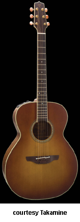 TF430SS | - Grand Auditorium NEX-style body, solid cedar top, solid ovangkol back and sides, round soundhole with concentric rings rosette, body binding, 14/20-fret bound ebony fingerboard with small MOP dot inlays, bound headstock with "T" logo, three-per-side gold tuners with amber buttons, ebony bridge, CTP-1 electronics, available in Satin Sunburst finish, new 2008. |