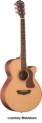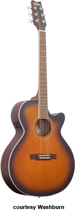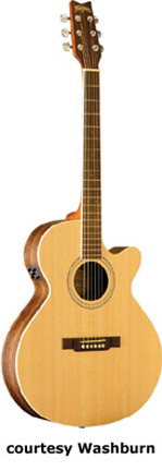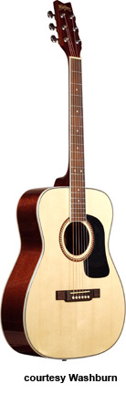 WASHBURN | ACOUSTIC: FOLK MODELS (F SERIES) | In the late 1970s/early 1980s, Washburn offered many folk/auditorium body style counterparts to their Dreadnought series. However information is limited on these guitars. We know that the folk model is typically the same as the Dreadnought counterpart in specs, and prices are a bit lower on the folk models. Models include, but are not limited to, the F20, F25, and F27 S. Any information on these guitars can be submitted directly to Blue Book Publications, and look for updates in further editions. | F1 SK (JOEY) | - smaller travel guitar, solid spruce top, round soundhole, ovankol back/sides, mahogany neck, rosewood fingerboard with pearl dot inlay, rosewood bridge with white bridgepins, three-per-side chrome Grover tuners, available in Natural finish, mfg. summer 1998-2000. |