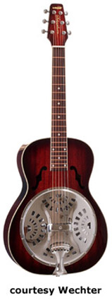 WECHTER GUITARS | RESONATORS | | SCHEERHORN MODEL 6510-F/6510-R | - resonator body, mahogany top/back/sides, two f-holes (Model 6510-F) or a round soundhole (Model 6510-R), square neck, 19-fret fingerboard with dot inlay, three-per-side tuners, available in Antique Natural or Tobacco Sunburst finishes, current mfg. |