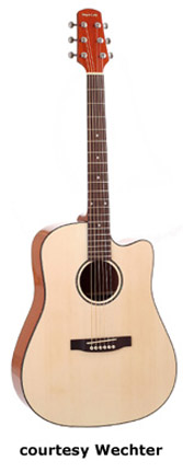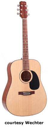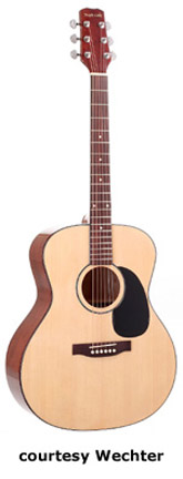 2200 SERIES | - dreadnought or dreadnought 7/8 size, spruce top, agathis back and sides, 14/20-fret rosewood fingerboard with dot inlay, rosewood bridge, black pickguard, Natural finish, disc. 2005. |