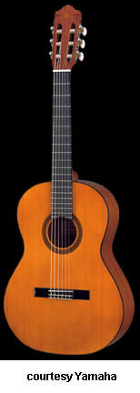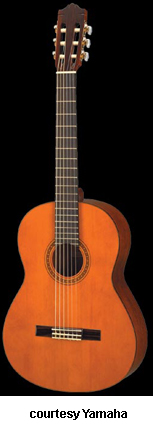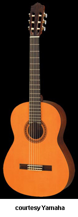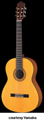 YAMAHA | CLASSICAL: CONCERT SERIES | Yamaha has produced several standard/concert-grade classical guitars, but unfortunately, we only have documentation on a handful of them. All models since 1990 are listed and a few from the late 1960s and early 1970s appear below as well. However, without any factory catalogs or specifications, we are unable to list all of them. If you have information, catalogs, or specifications on any Yamaha classical guitar that is not listed, please submit directly to Blue Book Publications. | C40/CG40A | - classical-style body, spruce top, round soundhole with wood pattern rosette, Jelutong, Indonesian mahogany, or Meranti back and sides, nato neck, 14/19-fret rosewood, Javanese rosewood, or Sonokeling fingerboard, slotted headstock, three-per-side open-style chrome tuners, rosewood, Javanese rosewood, or Sonokeling tied bridge, available in Natural finish, 25.6 in. scale, mfg. 1993-present. |