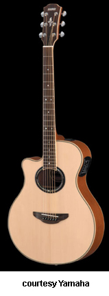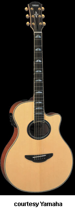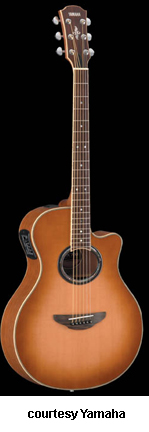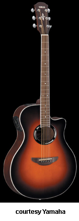 YAMAHA | ACOUSTIC ELECTRIC: APX SERIES | The APX Series of acoustic/electric instruments was introduced in the late 1980s, and they were the first acoustics with cutaways to be offered by Yamaha. They also featured thinner bodies with arched backs, multiple piezo pickups, and several mono and stereo electronic configurations. The APX Series is still available from Yamaha, but the line has undergone several changes throughout the years and most models were changed all at once. The first series of APX guitars was produced until 1993 and they can be distinguished by pop-up control knobs in the side of the body. 1994 was a transition year with the introduction of the C APX Series where all models featured a C suffix. These models have an actual control plate for the electronics, but they only lasted around a year. In 1995, Yamaha introduced the A APX Series that slowly evolved to include all APX models by 1997, when an A suffix was attached to each model. In 2000, the third series of APX models was introduced. In mid-2006, the fourth series of APX models was introduced that featured a three digit number in the model name. Yamaha also offers nylon-string APX models that have overlapped most of the aforementioned series. | APX 3/APX 3M | - single smooth cutaway APX-style body, spruce top, nato back and sides, oval soundhole with black/brown custom rosette, top and back black body binding, nato neck, 14/22-fret rosewood fingerboard with dot inlays, nato headstock overlay with logo and custom design inlays, three-per-side chrome tuners, rosewood bridge, white bridge pins with black dots, no pickguard, System 46 one-way electronics, available in Cherry Sunburst, Natural Satin (APX3M), Tinted, or Tobacco Brown Sunburst finish, 25.5625 in. scale, mfg. 2003-06. |