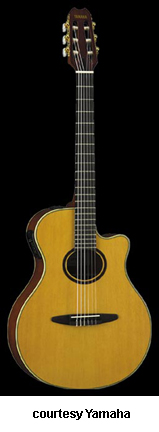 APX 10NA | - nylon string configuration, single smooth cutaway APX-style body, solid cedar top, rosewood back and sides, oval soundhole with wooden/rope pattern rosette, multi-ply body binding, African mahogany neck, 24-fret extended ebony fingerboard, slotted headstock with rosewood overlay and logo, three-per-side open-style gold tuners with pearloid buttons, Indian rosewood bridge, System 29 two-way bridge/body piezo pickups, three-band EQ, EQ pass, mix, volume, and AMF controls, available in Natural Satin finish, 25.5625 in. scale, mfg. 1997-99. |