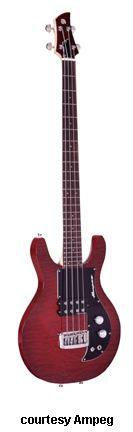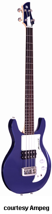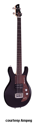 AMB1 | - double cutaway basswood body, 4-string, maple neck with 24-fret rosewood fingerboard, black pickguard, matching color headstock, 30 in. scale, carved rosewood bridge, 1 Seymour Duncan SMD-4 Basslines pickup, volume and tone knobs, two-position switch, available in Blue Pearl, Black Pearl, or Purple Metallic, mfg. 2001 only. |
