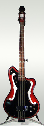 AMPEG/DAN ARMSTRONG AMPEG | ELECTRIC BASS: SCROLL BASS REISSUE SERIES | In 1997, Ampeg offered the AEB-2 and the AUB-2 . Designed and developed by Bruce Johnson (Johnson's Extremely Strange Musical Instrument Company of Burbank, California) in cooperation with Ampeg beginning in 1995, the first prototypes were completed in November, 1996. Rather than just release a historic reissue, Johnson sought to marry the eye-catching original body design to state-of-the-art electronics and neck construction. | AEB-2 (FRETTED) | - offset double cutaway western ash body, bolt-on rock maple neck, 35 in. scale, 20-fret ebony fingerboard with white dot inlay, scroll headstock, aluminum bridge, brass tailpiece and nut, 2-per-side Schaller tuners, chrome hardware, humbucking magnetic pickup, bridge-mounted piezo pickups, 2 volume/tone controls, 3-position tone select switch, available in Solid Black (Model AEB-2 BL), Black with Natural Neck (Model AEB-2 BT), Natural (Model AEB-2 NT), and Sunburst (Model AEB-2 SB) finishes, mfg. 1997-2000. |