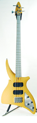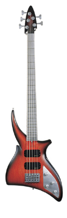 SHARK BASS | - body shape similar to Basking Shark, four- or five-string configurations, red alder body, bolt-on 24-fret maple neck, two Bartollini pickups, Schaller tuners, unique softcoating finish, available in Red or Black finish, mfg. 2003-04. |
