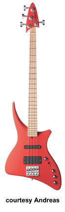 ANDREAS | ELECTRIC BASS | | BASKING SHARK | - choice of maple or ash body, 5 strings, balanced ergonomically designed body, aluminum fingerboard, Schaller BM Light tuners, Schaller 2000 Series 3 dimensionally adjustable bridge, 2 Alembic AE-3 Soapbar pickups with active circuitry, volume, balance, bass and high controls, handmade Thomastik-Infeld strings, also available in 4-string and fretless configurations, available in Stained Sunburst, Sunburst Orange, Sunburst Blue, and Nature Sunburst matte finishes, limited mfg., disc. 2002. |