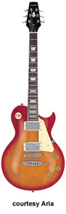 PE STUDIO | - single sharp cutaway carved maple top, bolt-on maple neck, 22-fret rosewood fingerboard with oval inlays, original bridge and stop tailpiece, two humbucker pickups, four knobs, three-way switch, chrome hardware, available in Brown Sunburst, Honey Burst, or Wine Red finish, mfg. 2004-05. |