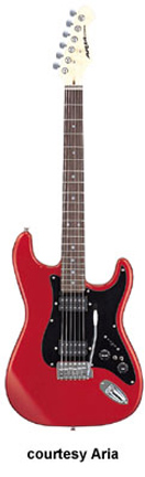 STG 005 | - similar to the STG 004 except has two humbucker pickups, black pickguard and knobs, available in Black or Candy Apple Red finish, mfg. 2001-present. |