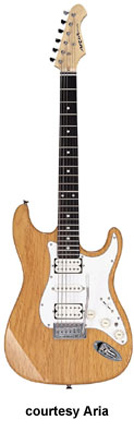 STG 004 | - similar to the STG 003, except has two single coil and one humbucker pickups, vintage-style VFT-1M tremolo, available in 3-Tone Sunburst, Natural, See-Through Blue, See-Through Green, or See-Through Wine Red finish, mfg. 1998-present. |