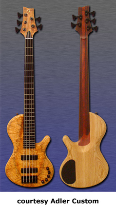 ADLER CUSTOM GUITARS | Instruments previously built in Calimesa, CA between the 1990s and mid-2000s. | Michael Adler started Adler Guitars was started as a true custom shop in the 1990s in an effort to bring genuinely custom instruments to those who couldn't previously afford them. Adler basses were hand built to order, but a few select dealers stocked some basses. Custom scale lengths, hardware, pickups, and preamps were all available at no extra cost. Custom body shapes and inlays were also available and all basses include a lifetime warranty. Adler released a Sub-Contra Bass at the 2004 NAMM show, and a five-string set-neck model in 2005. | |