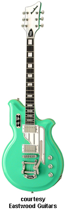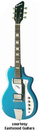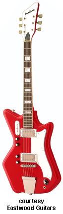 AIRLINE | Also see Supro. Instruments currently produced in Korea by Eastwood Guitars since 2004. Distributed by Eastwood Guitars in Georgetown, Ontario, Canada. Previously manufactured by Valco in Chicago, IL between 1958 and 1968. See chapter on House Brands. | This trademark has been identified as a House Brand of the Montgomery Wards department store chain. These guitars were produced by Kay and were basically variations of what Kay had already built. There are several models just like thereare in Kay; therefore, it is almost impossible to list them all. Author/researcher Willie G. Moseley indicates that the unique body design is proprietary to the Airline brand. Models can be found constructed of both Res-O-Glas (a hollow fiberglass body) and wood. Valco began building solid body wood instruments in 1952, and built fiberglass body electric guitars from 1962 to 1966. The top of Airline headstocks, just like the Nationals, ran low-to-high from the left to the right. Not that it matters with regard to playability and tone, but Supros dipped the headstock in the opposite way (sources: Willie G. Moseley, Stellas & Stratocasters and Michael Wright, Guitar Stories, Vol II). Eastwood Guitars reintroduced the Airline brand in 2004 as a line of reasonably priced guitars imported from Asia. These guitars are designed after Airline's popular models including the Res-O-Glas (Map) model. For more information, visit Eastwood's website or contact them directly (see Trademark Index). | | ELECTRIC | ELECTRIC BASS | ELECTRIC/ELECTRIC BASS CURRENT MFG. |