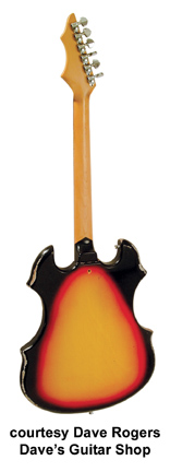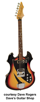 ANDERBILT | Instruments previously built in Corpus Christi or Brownsville, TX, during the mid- to late 1960s. | With the help of repairman Gene Warner of Meteor Music (San Antonio), Teisco Del Rey attempted to track down the origins of the Anderbilt (also possibly Andertone) guitars. The builder was rumored to be a Baptist minster; and the educated guess was made that his last name was Anderson. The most striking feature of Anderbilt guitars is the vibrato: rather than being located on the bridge or tailpiece, the neck is the mechanism! Built in the style of a pump shotgun, the entire neck has to be pushed in toward the body and pulled away to raise or lower the pitch. Features on the guitar include a-six-on-a-side headstock, 2 pickups, a "coat-of-arms" body design, and separate volume and tone knobs for each pickup. Any further information on Anderbilt can be submitted directly to Blue Book Publications Source: Teisco Del Rey, Guitar Player Magazine, October 1988. | |