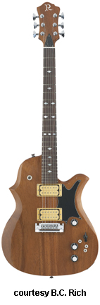 B.C. RICH | ELECTRIC: SEAGULL SERIES | The Seagull model was first introduced in 1971. "These models were the first production B.C. Rich electric guitars. To my knowledge, the Seagull Guitar and Bass were the first guitars to offer the neck-through design featuring total access with the heel-less neck-thru concept," writes Bernie Rico. | SEAGULL | - sculpted single cutaway body, neck-thru body, 24-fret fingerboard with diamond inlays, two exposed humbucker pickups, black pickguard on treble bout only, 3-per-side tuners, four knobs, three switches, available in Suburst and possibly other finishes, mfg. 1971-76. |