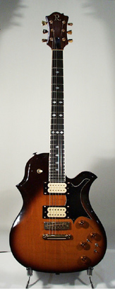 SEAGULL DELUXE 40TH ANNIVERSARY | - single cutaway koa body with a pointed treble side, beveled edges, mahogany NTB, 24-fret rosewood fingerboard with pearl diamond inlays, matching finish headstock overlay with logo, three-per-side Grover Super Rotomatic tuners, B.C. Rich Quad combination bridge/tailpiece, black pickguard, two DiMarzio Dual Sound exposed humbucker pickups, three knobs, one rotary knob, three-way pickup switch, three mini switches, chrome hardware, available in Natural finish, 24.625 in. scale, limited edition run of 40 instruments, new 2009. |