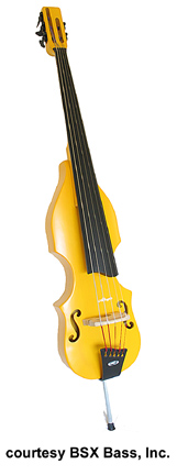 BSX BASS, INC. | ELECTRIC BASS | There are several options available on almost every model. Each option differs per model and style. Refer to the BSX website for all available options. | ALLEGRO ACOUSTIC | - violin shaped acoustic body, spruce or cedar top with f-holes, maple back, rock maple neck, ebony fingerboard, two-per-side tuners, Piezo-bridge system, active Bartolini electronics, 3-band EQ, individual volume control per string, rotating tummy rest, detachable neck, classical violin color with satin finish, 15 lb, 41.5 in. scale, current mfg. |