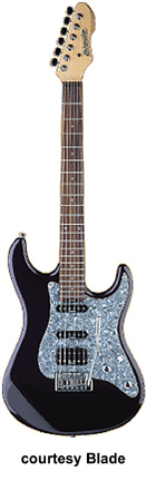 CALIFORNIA STANDARD (MODEL CS) | - offset double cutaway swamp ash body, bolt-on hard rock maple neck, 22-fret rosewood fingerboard with pearl dot inlay, Wilkinson VS-50K tremolo, graphite nut, six-on-one-side die cast tuners, chrome hardware, white pearloid pickguard, two VS-1 single coil and one HD-4 humbucker pickups, volume/tone (push-pull coil tap) control, five-position selector switch, VSC mini-switch, Variable Spectrum Control electronics, available in Aegean Blue Burst, Black, Cherry Sunburst, Honey Burst, Purple Rain, Sparkling Blue (1994-96), Sparkling Purple (1994-96), or Vintage White finish, mfg. 1994-2008. |