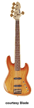 B-25 (PENTA 5) | - offset double cutaway contoured sen ash body, bolt-on maple neck, 5-string configuration, 21-fret rosewood fingerboard with pearl dot inlay, fixed bridge, 4/1 per side Gotoh tuners, 2 JHB-25 J-style pickups, gold hardware, master volume/pickup balance/Treble boost/Bass boost controls, Variable Bass Spectrum Control 2 (VSC 2) active electronics, available in Honey, Misty Violet, Nightwood, Ocean Blue, and See-through Red translucent finishes, mfg. 1993, 2003-present. |