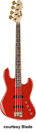 B-2 (TETRA 4) | - offset double cutaway contoured sen ash body, bolt-on maple neck, 4-string configuration, 21-fret rosewood fingerboard with pearl dot inlay, fixed bridge, 4-on-a-side Gotoh tuners, 2 JHB-2 J-style pickups, gold hardware, master volume/pickup balance/Treble boost/Bass boost controls, Variable Bass Spectrum Control 2 (VSC 2) active electronics, available in Honey, Misty Violet, Nightwood, Ocean Blue, or See-through Red Translucent finishes, mfg. 1993, 2003-present. |
