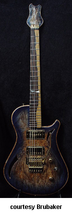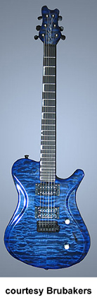 BRUBAKER | ELECTRIC | The B-2 and K-4 have exactly the same features, except the K-4 is a single cutaway and the B-2 is a double cutaway. | B-2/K-4 STANDARD | - single cutaway (K-4) or double cutaway (B-2) lightweight ash or mahogany body, maple neck and fingerboard, two humbucker or three single coil pickups, two knobs (v, tone), three-way switch, Hipshot chrome hardtail bridge, chrome Grover tuners, available in Black, White, Seafoam Green, Royal Blue, Platinum, Red or Viper Red finish, hardshell case included, current mfg. |