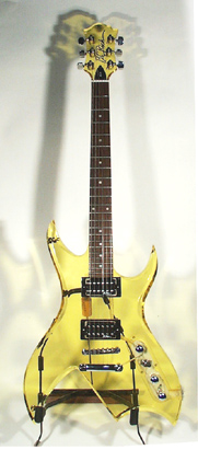 BICH ACRYLIC | - offset double cutaway with bottom bout cutaways, clear acrylic body, bolt-on hard rock maple neck, 24-fret rosewood fingerboard with dot inlays, classic BC Rich headstock with three-per-side tuners, tune-o-matic bridge, stop tailpiece, two exposed humbucker pickups, three knobs (two v, tone), three-way pickup switch, chrome hardware, available in Green (early 2000s), Ice (2006), or Red (early 2000s) finish, 25.5 in. scale, mfg. early 2000s, reintroduced 2006 only. |