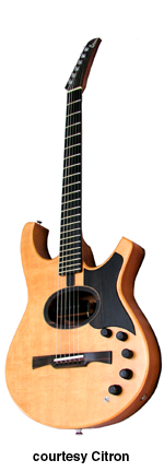 AEG-3 | - similar to the AEG, except has no soundhole, three Citron custom blended single coil pickups, four knobs (MV, blend, b, t), and a five-way pickup switch, 25.5 in. scale, current mfg. |