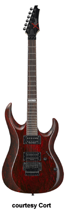 X-2 | - offset double cutaway basswood body, bolt-on hard rock maple neck, two Powersound humbucking pickups, six-on-one-side die-cast tuners, Full-Action II tremolo bridge, available in Black, Red Metallic and Blue Metallic finish, mfg. 2001-present. |