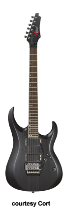 X-TH | - offset double cutaway mahogany body, arched top, five-piece maple/walnut neck NTB, 24-fret rosewood fingerboard with offset dot inlays, six-on-one-side tuners, locking tremolo with locking nut, two EMG active pickups, two knobs (v, tone), three-way switch, chrome hardware, available in Open Pore Black finish, 25.5 in. scale, mfg. 2006-present. |