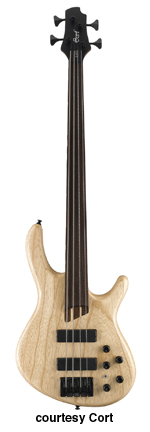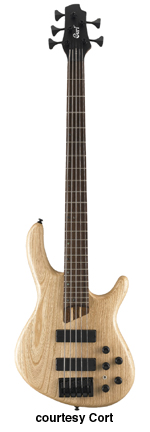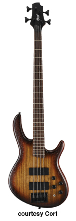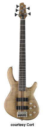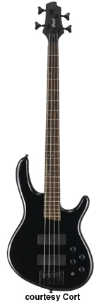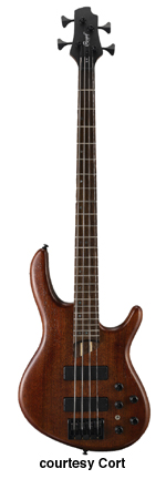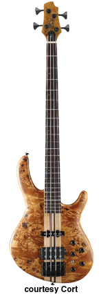 CORT | ELECTRIC BASS: ARTISAN SERIES | The Artisan Bass Series models are very similar to prior C M Artist Series models (the block inlay at 12th fret on those models read "C M Artist"). In 2001, Cort changed the model designation of the Artisan series from A to NA. This lasted for a year when it was turned back to A. | A4 (NA4) | - offset double cutaway select maple body, through-body wenge/maple laminated neck, 24-fret rosewood fingerboard with offset dot inlays, Artisan block inlay on 24th fret, black headstock, fixed bridge, gold hardware, squared headstock, two-per-side tuners, two Mightymite soapbar pickups, five knobs, active electronics, available in Grey Oil Satin (disc. 2007), Natural Satin, Open Pore Black Cherry, Open Pore Natural, See-Through Red, or Walnut Stain finish, 34 in. scale, mfg. 1996-present. |