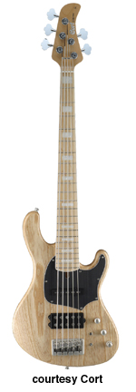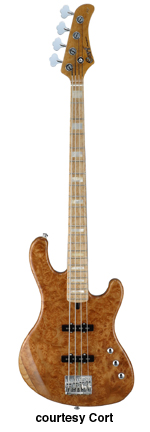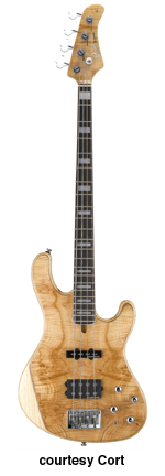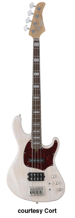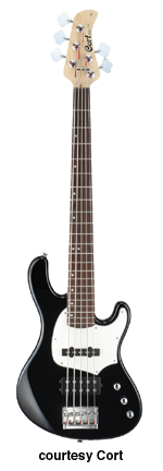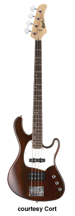 CORT | ELECTRIC BASS: GB SERIES | Besides the models listed, there also exists a GB64 and GB65. These models were never listed in either the catalog or price list. | GB24 | - offset double cutaway agathis body, hard rock maple neck, 22-fret rosewood fingerboard, single powersound humbucking pickup, two knobs, white pickguard, 4-on-one-side tuners, available in Black, Walnut Satin, Amber Satin, Trans. Red, or Trans. Blue finishes, mfg. 2001-02. |