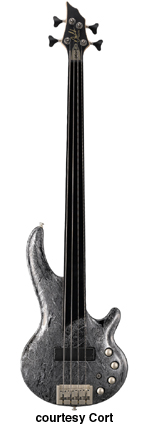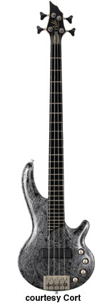 CORT | ELECTRIC BASS: GARY CURBOW SERIES | Gary Curbow has developed this series from a synthetic composite called luthite. These were originally the Luthite Series (see Luthite Series). | CURBOW 4 | - slimmed down offset double cutaway luthite body, bolt-on hard rock maple neck, 24-fret ebanol fingerboard with white dot inlays, two-per-side die cast tuners, fixed bridge, chrome hardware, Mightymite humbucker pickup, volume/treble/mid/bass controls, available in Black, Blue Metallic Satin (disc.), Canon Blue Satin (disc.), Lake Placid Blue (disc. 2007), Mystic Ice Crazer (2007-present), Mystic Orange Crazer (2007-present), or Red Metallic finish, 34 in. scale, mfg. 1998-present. |