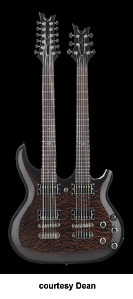 HARDTAIL DOUBLENECK | - doubleneck configuration with six- and 12-string necks, quilted maple top, humbucker pickups, four knobs (two v, two tone), three-way pickup switch, neck switch, chrome hardware, available in Tiger Eye finish, limited run of 200 instruments, mfg. 2006-07. |